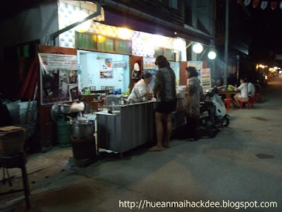 เมื่อเดินชมเสร็จแล้วก็เดินกลับซอย 5 ล่าง ไปยังเฮือนไม้แฮกดีเหมือนเดิมค่ะ ที่ซอย 5 ล่างจะมีร้านอิ่มเลย อาทิเช่น ข้าวปุ้น-น้ำยากะทิ,น้ำพริก และแกงเขียวหวาน บริการนักท่องเที่ยว และมีกาแฟสูตรโบราณน้ำแข็งใสด้วยนะคะ เฮือนไม้แฮกดีจะมีสถานที่จอดรถให้นักท่องเที่ยวด้วย จากซอยถนนคนเดินมองลงมาจะเห็นซอยแบบนี้ค่ะ